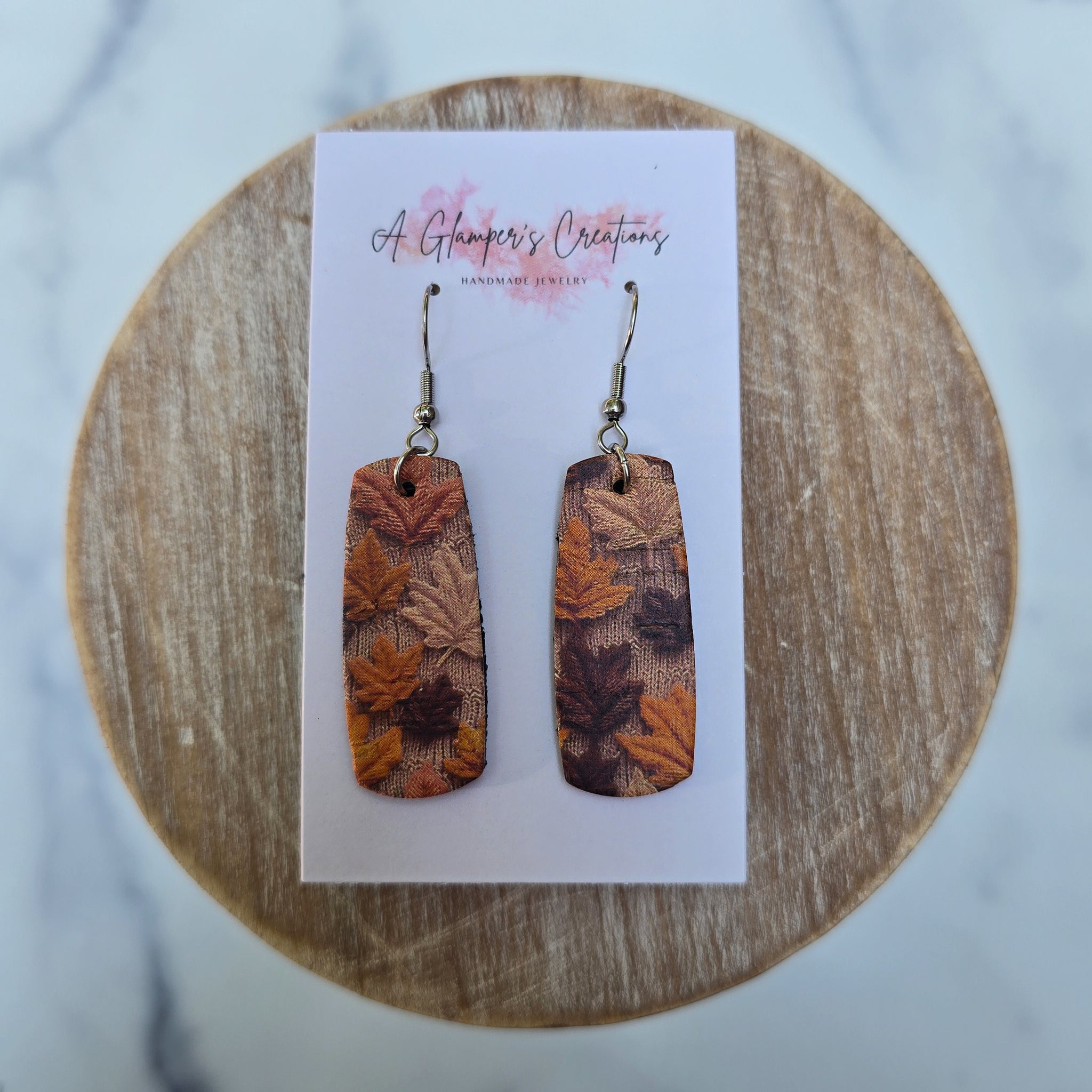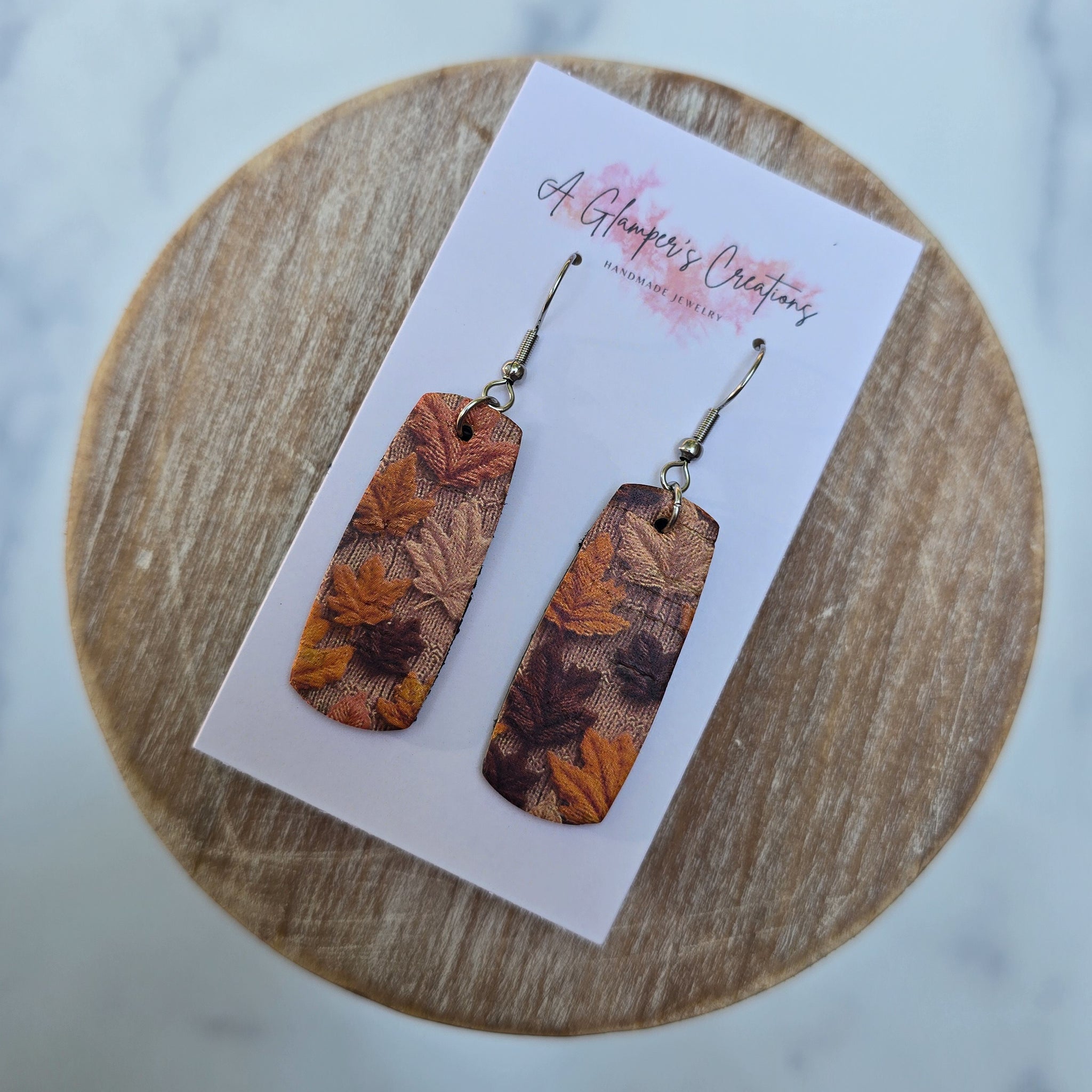 Enhance your fall fashion with our hand-crafted Fall Faux Embroidered Leaves Mini Bar Earrings! At 1.5 inches long, these earrings are the perfect size for a subtle touch of autumn to any outfit. And with cork backed with genuine leather and stainless steel hooks, you can enjoy both style and comfort.
