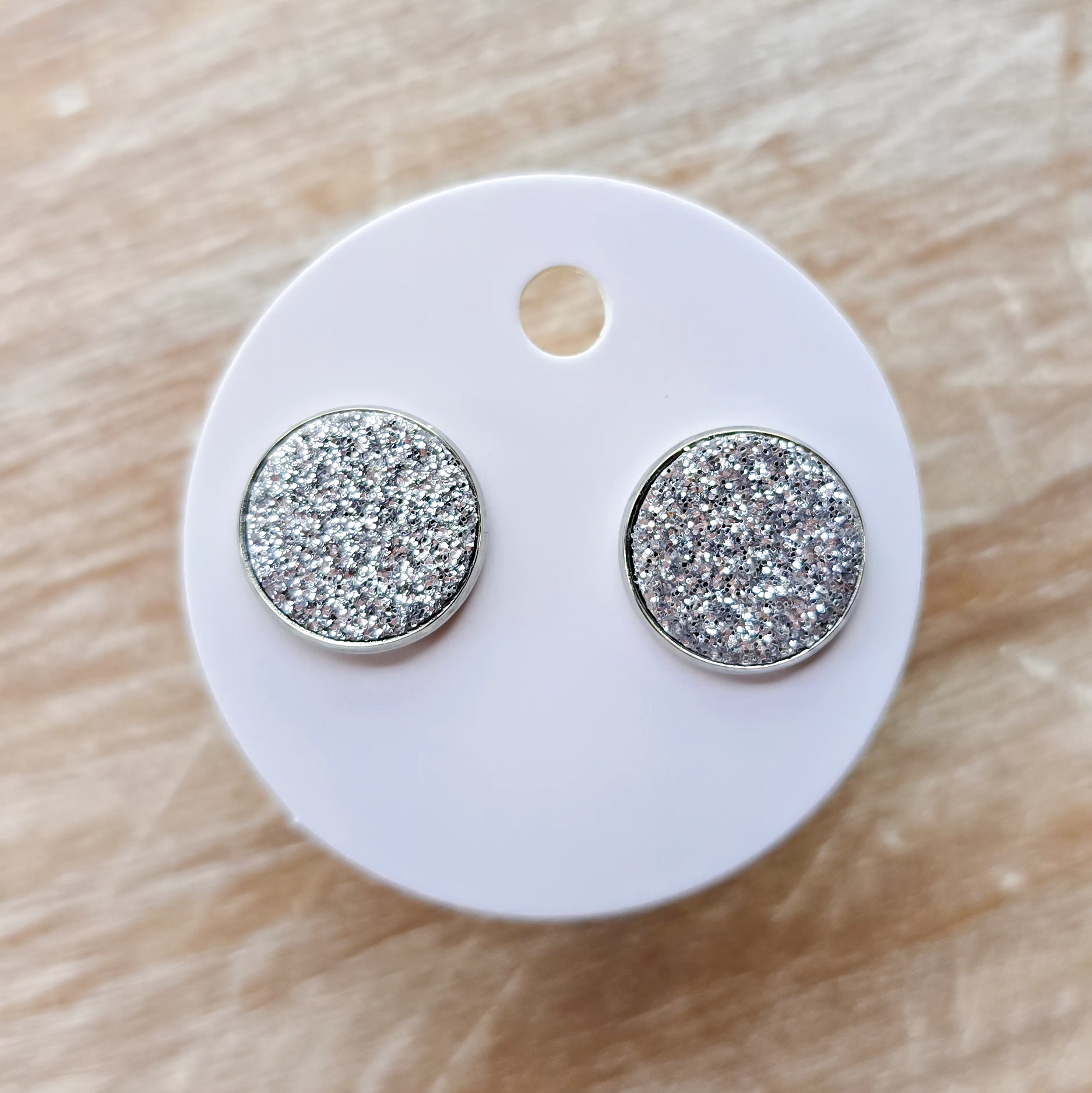 • Load image into Gallery viewer, Silver Glitter Leather Stud Earrings